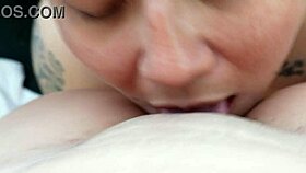 bbw girlfriend gives sloppy oral while her juicy pussy soaks the bed