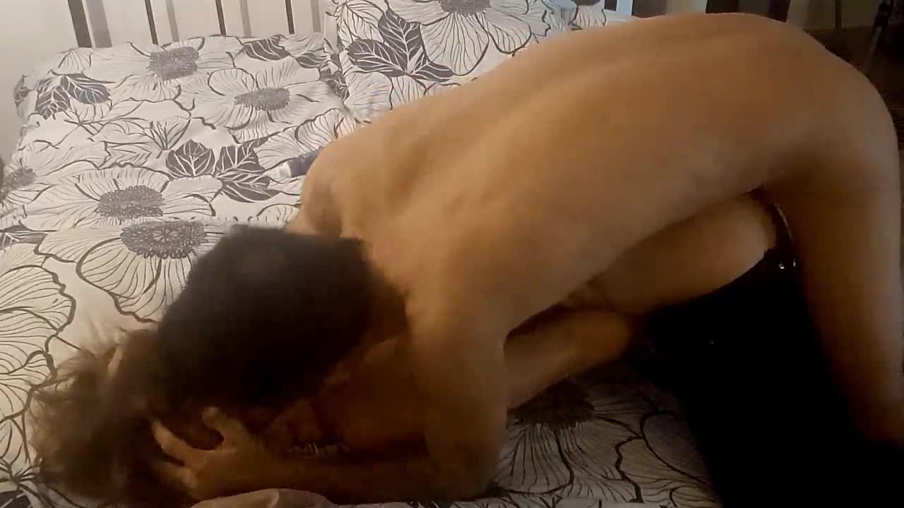 I'm fuckin this sexy white slut in her satin thong givin her a rimjob and blowjob in doggy.