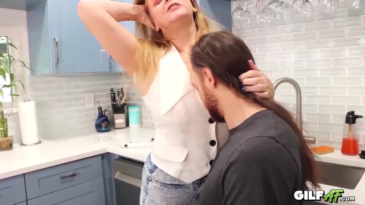 Blonde milf fucks her stepdaughter's boyfriend with sloppy blowjob and assfucking