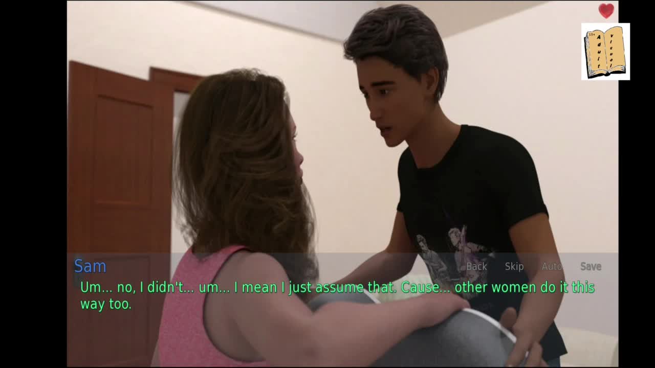 A wife and stepmother share kisses in a 3d game.